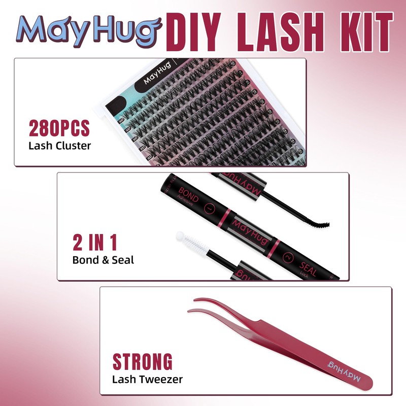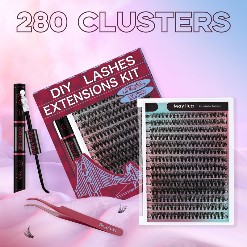 - 【You Will Receive a Lash Kit】including 280 lash clusters and 2 tools: lash bond and seal waterproof, lash tweezer. This kit allows you to achieve a professional salon effect in the comfort of your home, whilst saving time and costs.