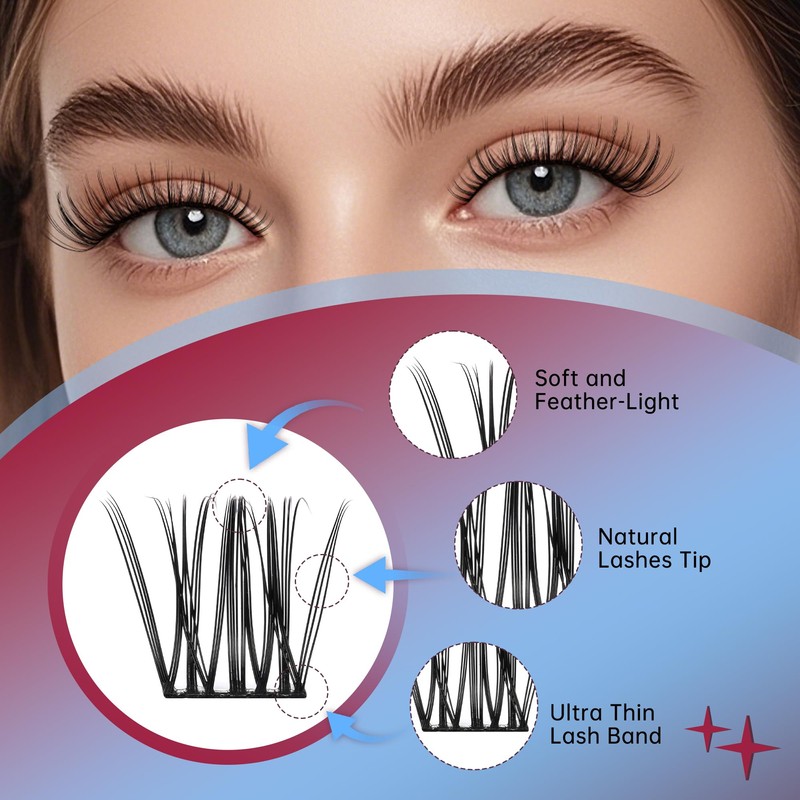 - Ultra-thin and durable band: the advanced production technology allows the fibre to be fixed well, which helps to make the false eyelashes tighter and more durable and ensure that the eyelashes do not break when torn off with tweezers. In addition, independent eyelashes with ultra-fine roots allow you to fit the natural eyelashes better and create an extremely natural and hierarchical effect.
