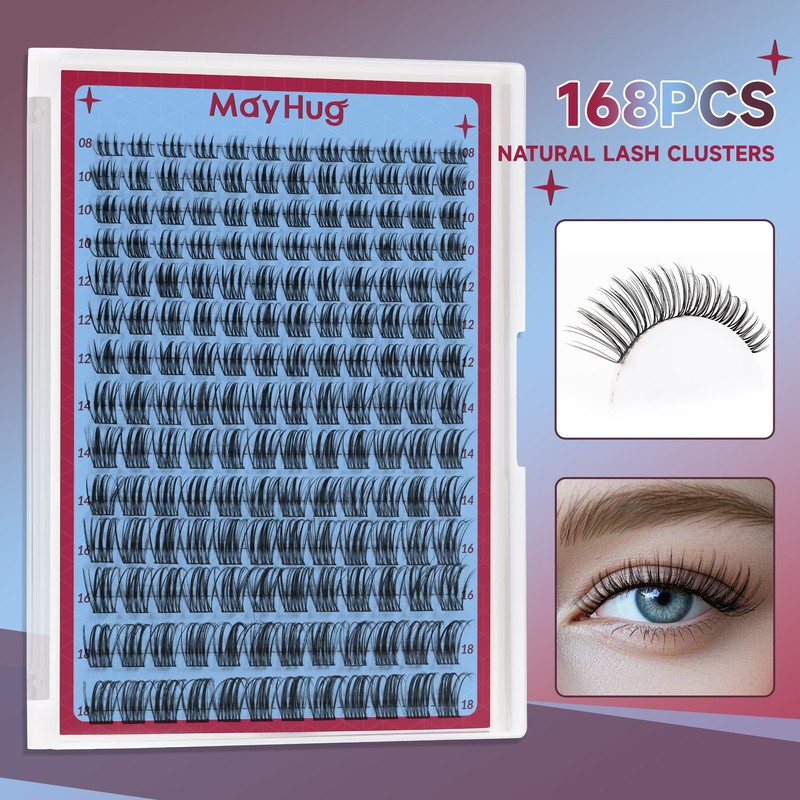 Mayhug Eyelash Extensions, Natural Cluster Lashes, 8-18 mm, Wispy Individual Eyelashes, D Curl Lash Clusters, 168 Pieces, 0.05 Super Thin Band, DIY Eyelashes for Home (FeatherLash)