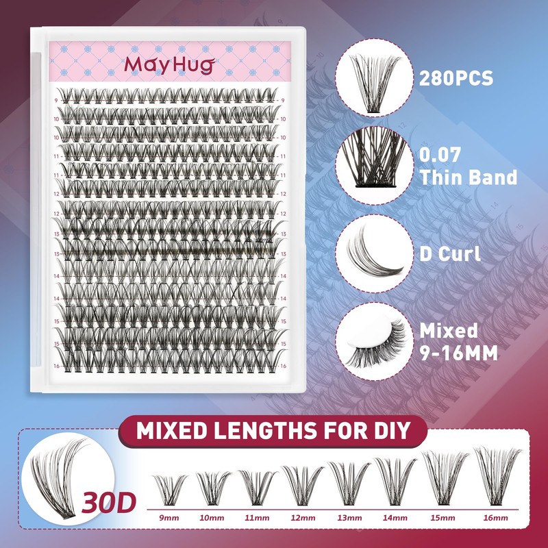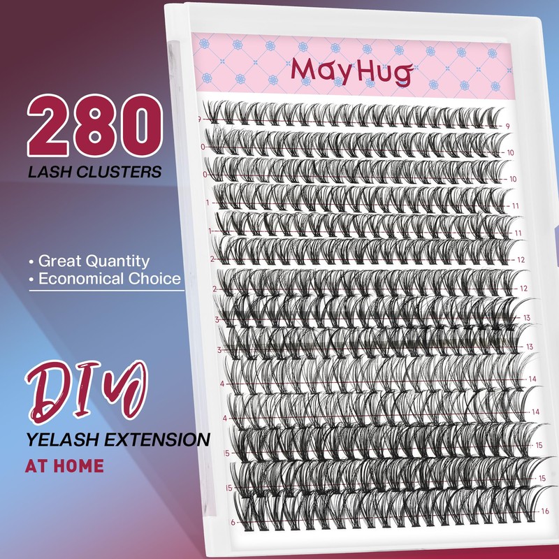 - 【High Capacity Lashes Clusters Book】The 280pcs lash cluster book features a selection of eyelash in 7 lengths (9-16mm). This flexible set allows you to mix and match to fit various occasions, providing effortless style changes to meet your needs.