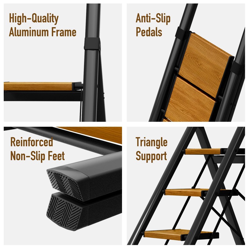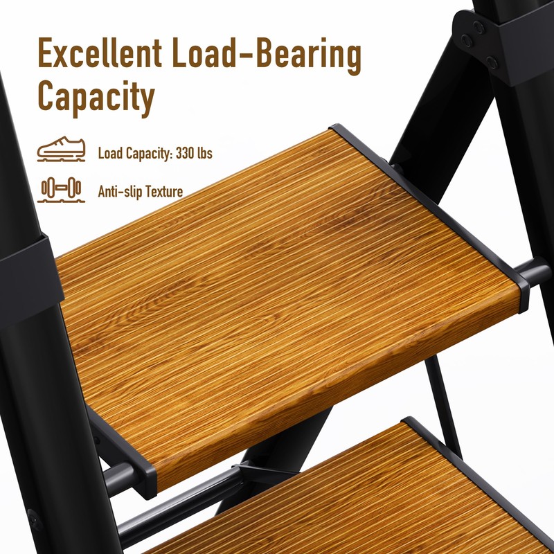 Mayi Plus 5 Step Ladder,Portable Step Ladder with Anti-Slip Wide Pedal,Aluminum Foldable Step Stool with Handrail,330lbs Capacity Stepladder for Home,Office,Library (Black Woodgrain)