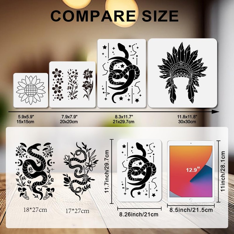 - Durable and Reusable: These Flower Snake Stencils are made of PET material, more flexible and durable than ordinary plastic, the surface is smooth, safe and not easy to damage, can be repeatedly cleaned and used.