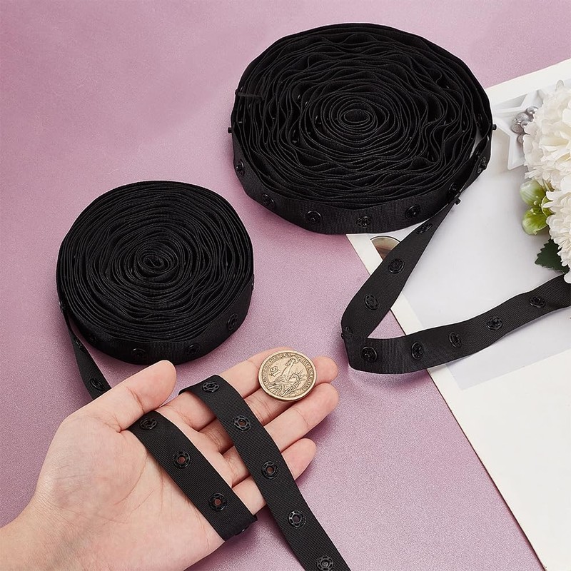 MAYJOYDIY 8.2 m Black Button Made of Polyester Press Stud Tape, 17 mm Wide, Sewing Closure, Press Stud Tape, Trim Made of Plastic, Press Stud Tape, Craft Replacement for DIY Clothing Accessories