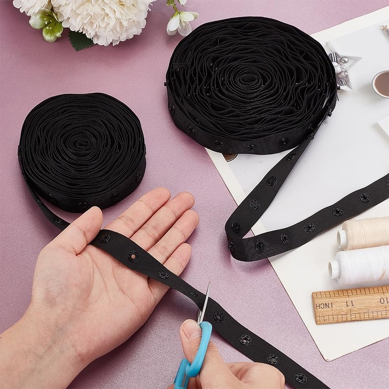 - Versatile: suitable for sewing and craft projects as well as DIY work. Press stud tape for sewing clothes, sewing press studs as a replacement for zips and buttons; can also be used as a press stud tape for sewing clothes, dresses, bags, pillows, quilts, duvets and curtains.