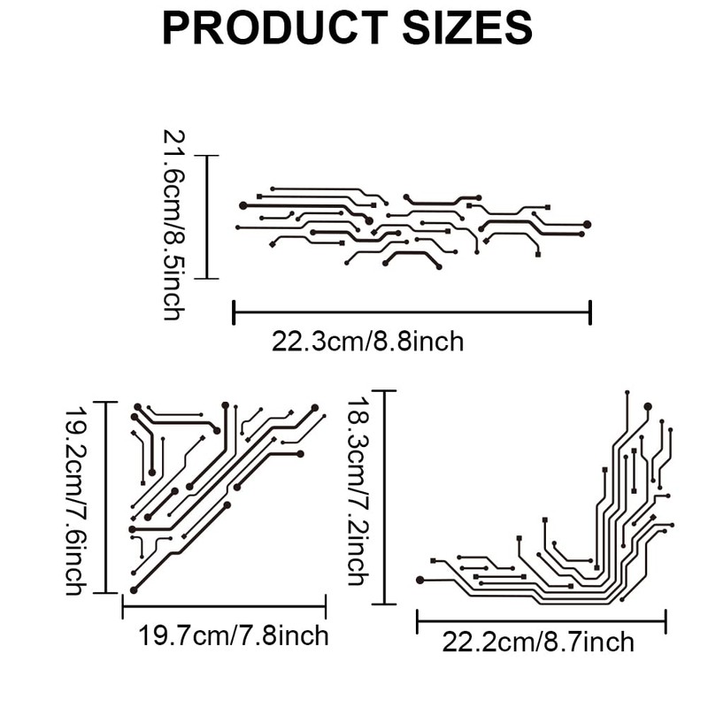 • Circuit pattern: 2 kinds of circuit edges and 1 kind of electrical circuit technology pattern. The patterns are novel and unique, ingenious and interesting design, very suitable for computer, TV and other electronic products, decoration for science and technology.