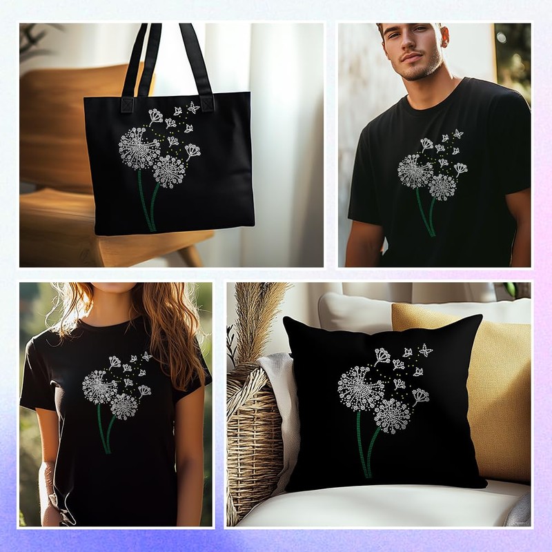 MAYJOYDIY Dandelion Butterfly Rhinestone Iron on Hotfix Transfer Decal Dandelion Seeds Clear Bling DIY Patch Clothing Repair Hot Fix Applique for T-Shirt Jacket Bag Jeans Craft