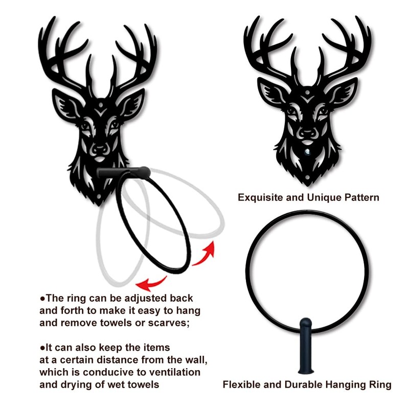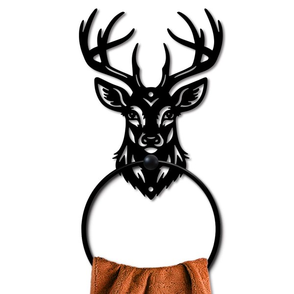 MAYJOYDIY Deer Head Towel Ring Metal Elk Antlers Wall Decoration Towel Holder Black Art Custom Towel Rack Wall Mounted For Bathroom Kitchen Home Decoration Gift