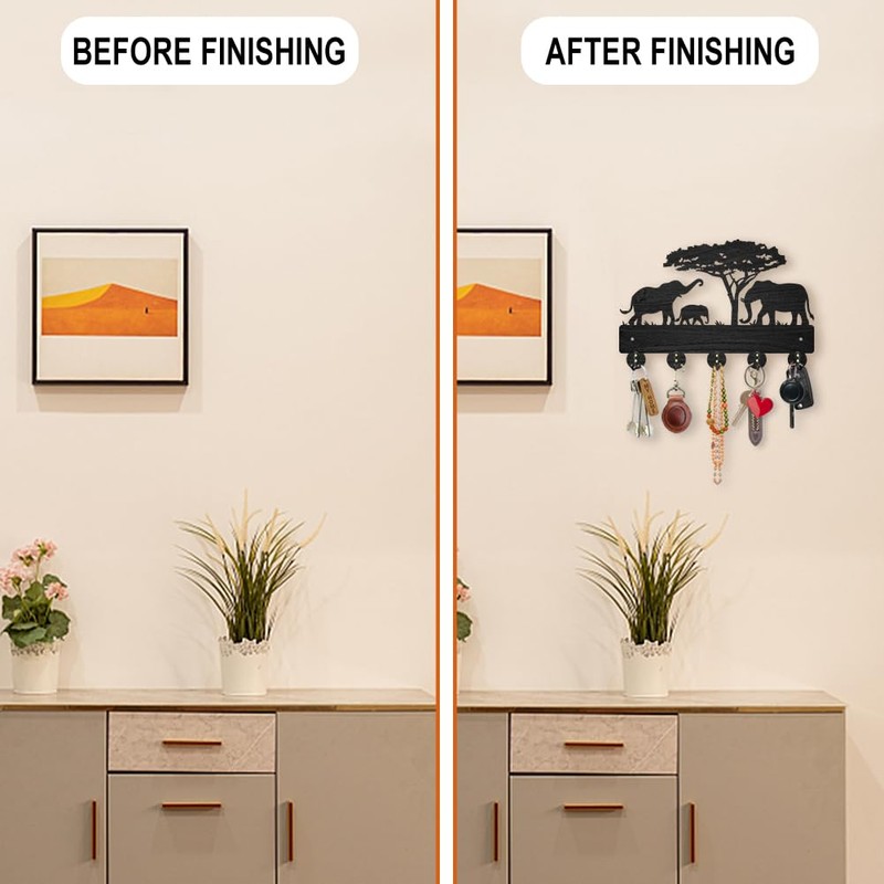MAYJOYDIY Elephant Tree Key Holder for Wall 11.8×8inch Wood Elephant Family Key Organizer Wildlife Key Hangers 5 Alloy Hooks Decorative Key Hook Rack Gift for Entryway Kitchen Hallway Office