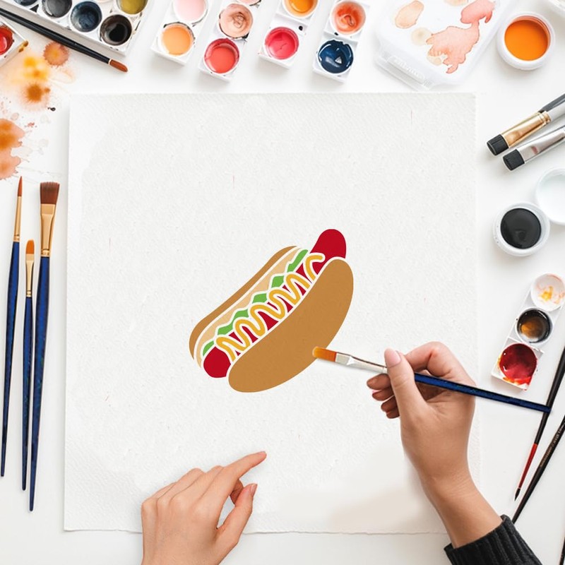 - Various food patterns: from the classic round doughnut with its seductive glaze to the neatly stacked sandwich, crispy chips, and the ever popular hot dog, each design is crafted with great attention to detail. The pizza slice with perfectly melted cheese, the flaky croissant, the hearty burger, the milk carton, and the decadent cake are all vividly depicted.