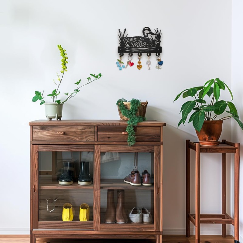 - Practical: The 5 hooks of the Wild Duck Reed Key Holder for Wall are made of high quality alloy, with smooth surface, not easy to rust and prevent scratching clothes. Suitable for hanging Shirt, small bags, umbrellas, keys, hats, scarves, belts, eyeglasses, wallets, kitchen utensils and other small and light items.