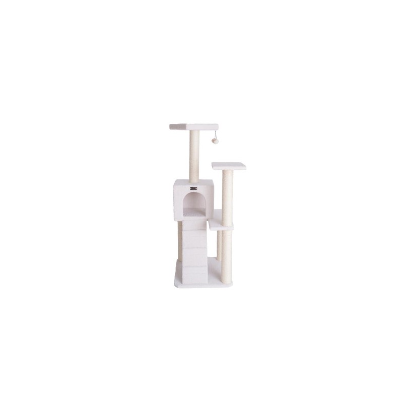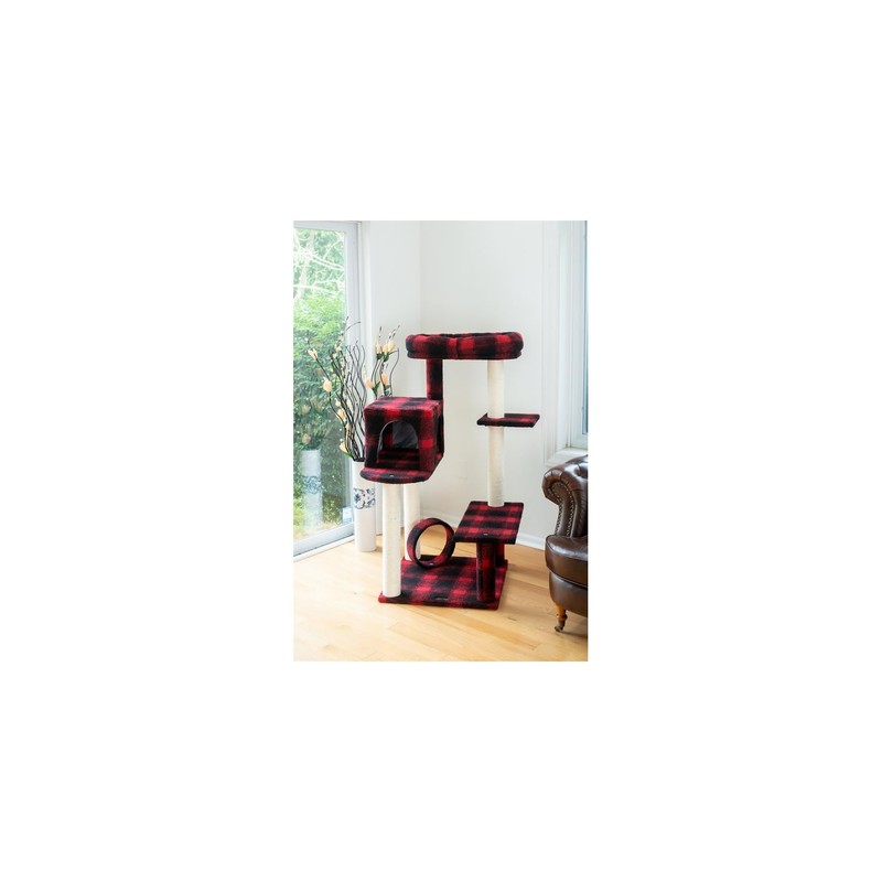 Cat fanciers will love model for their family of felines. There are four levels of activity including a tunnel, a condo with veranda, a bench, a mini perch, and a extra large top lounger with bolstered edge. Four sisal scratching posts and three carpeted posts will keep kitties busy. A striking red and black scotch plaid faux covering will add interest to your rooms decor. Pet owners can easily assemble the tree with included tools and instructions.