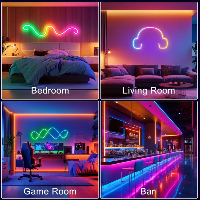 - Visualize Your Music: Transform your parties, gaming marathons, or relaxing evenings into unforgettable experiences. With a built-in microphone, these LED neon lights react to music and sound in real time, delivering vivid, synchronized lighting effects that move to every beat