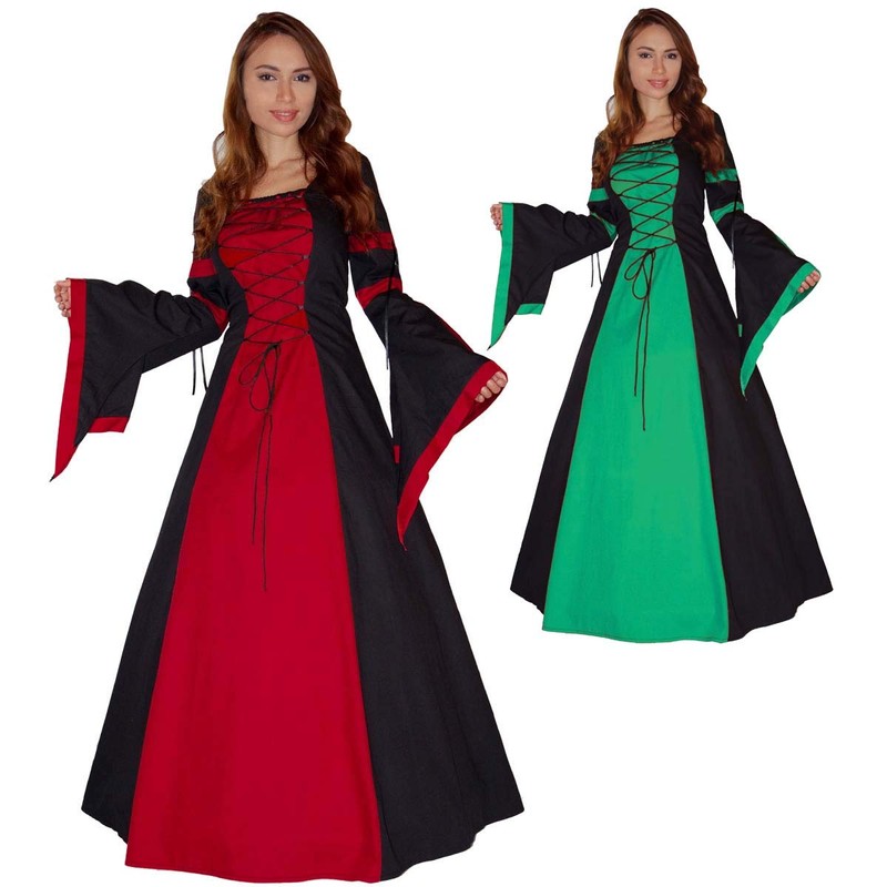 A charming and expressive medieval dress made of cotton in the colour combination red/black or red/green.