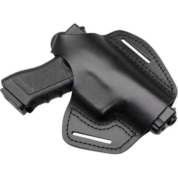 MAYMOC Leather Holster 2 Slot OWB Compatible with Glock 17 19 22 26 32 33 / S&W M&P Shield/Springfield XD & XDS/Plus All Similar Size Handguns Waistband Right Side - Black