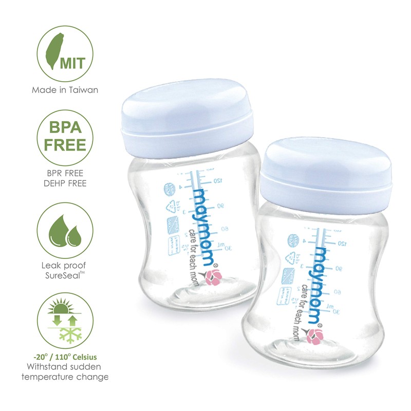 Maymom Botella de almacenamiento de leche de boca ancha con tapa de viaje y anillo de sellado; puede reemplazar las botellas clásicas Spectra S1 S2 Avent Natural Avent (6 unidades de 4.8 onzas/140 ml)