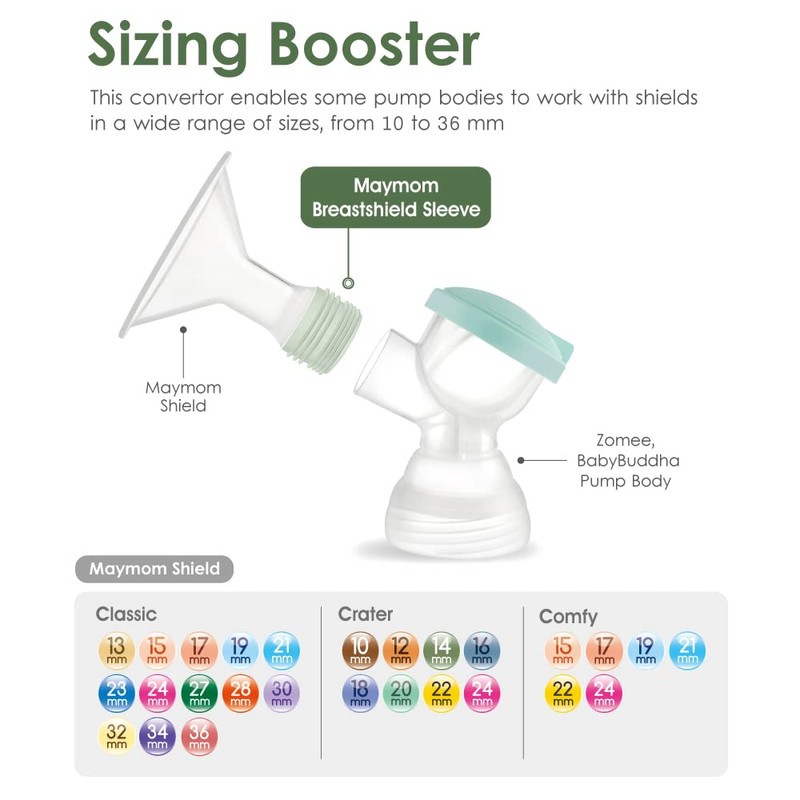 - Enables Maymom Myfit shields to be compatible with Zomee pump body and babybuddha pump body.