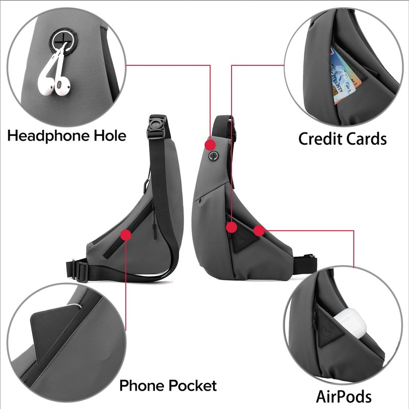 - ❤【Multipurpose Crossbody Shoulder Bag】Rationally organized space, multiple sized pockets at various angles, easy access to all your essentials. Main zipper pocket has compartmentalized separats spaces to organize small items, includes a small zipper pocket, a inner pocket, a card slot and two open slot. Organize small basic items well. 2 Front zipper pocket allows you to store power bank, keys, wallet and so on. An earphone hole on the top of this sling bag enables you to enjoy music easily.