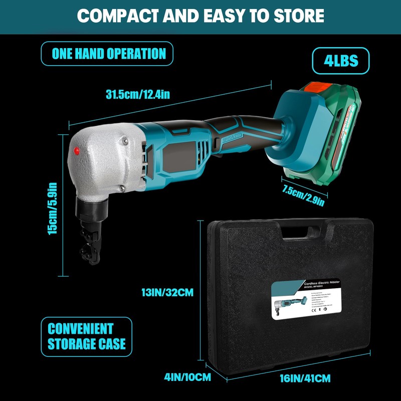 - Cordless Nibbler Metal Cutter: This nibbler metal cutter is compatible with Makita 18v battery, includes a high output 18V 2.0 ah battery and a 2 amp charger, ensuring extended runtime and fast recharging