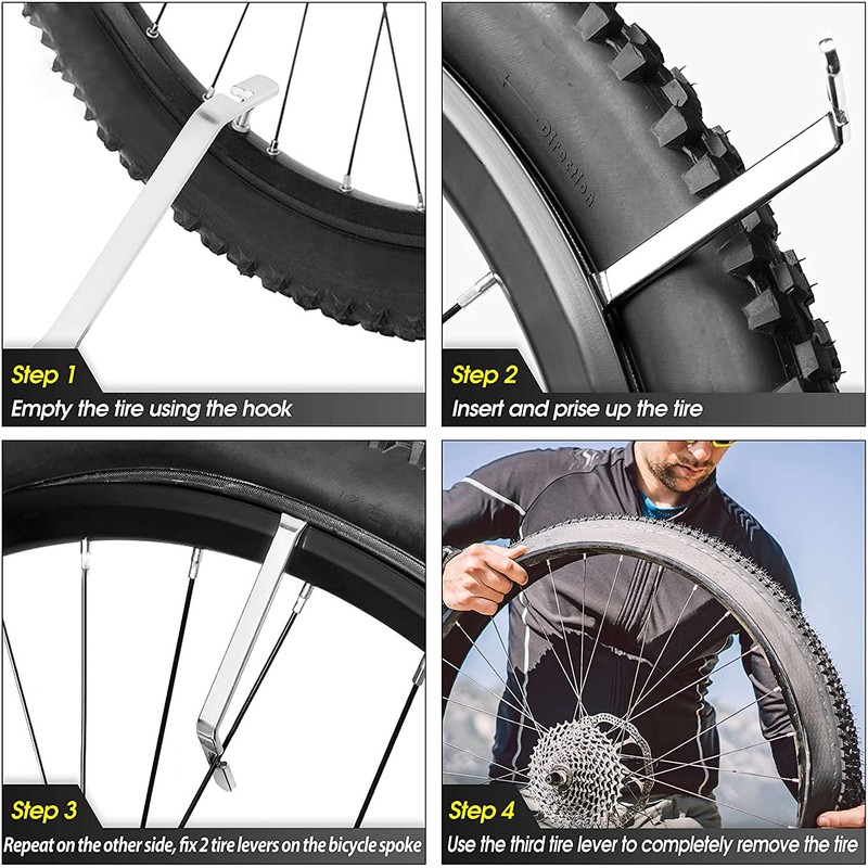 - Practicality: This bicycle tyre tie rod is a set of three and has a compact structure. Due to their small size, they fit perfectly in a bag or backpack and are an indispensable craft tool to avoid punctures when driving.