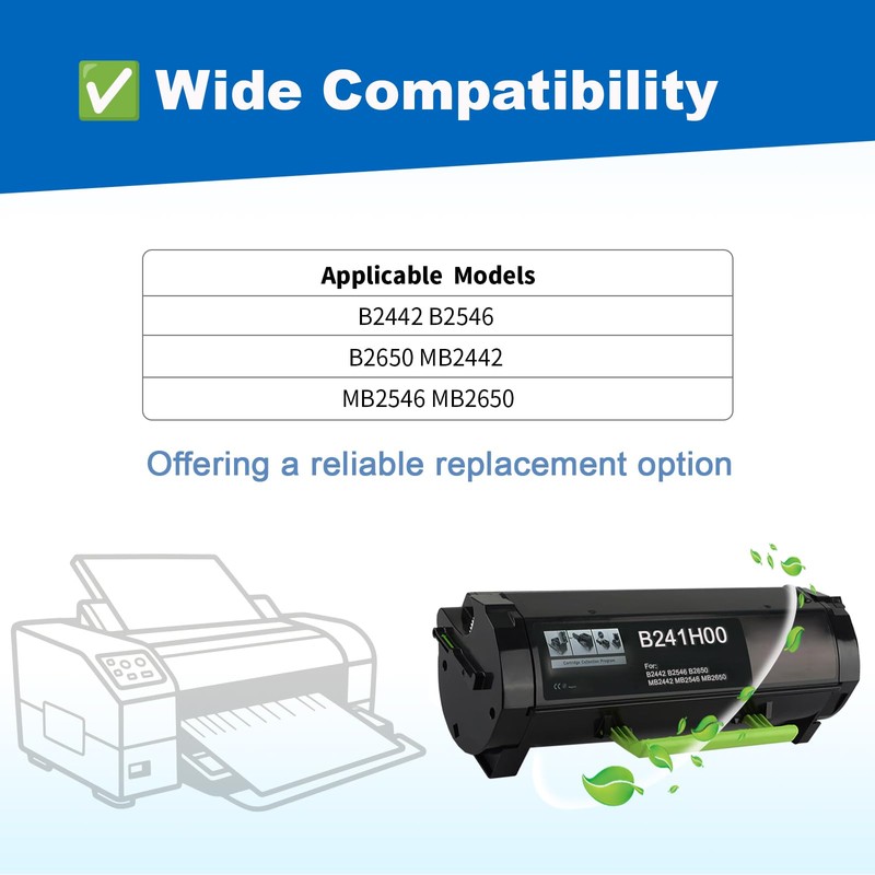 - Package Includes: 1 Pack of B241H00 Compatible Black toner cartridge for B2442 B2546 B2650 MB2442 MB2546 MB2650 Printers