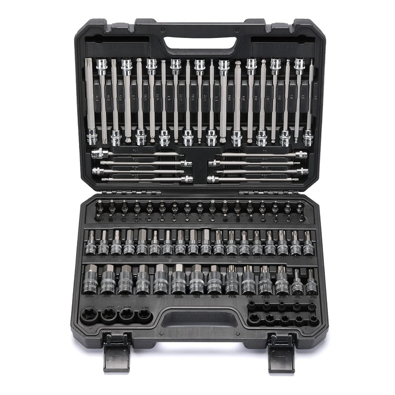 - Includes: (14)E-Torx Sockets, (35)hex bits socket, (17)tamper proof torx sockets, (14)torx bits sockets, (11)torx long bit sockets, (16)long ball end hex sockets.