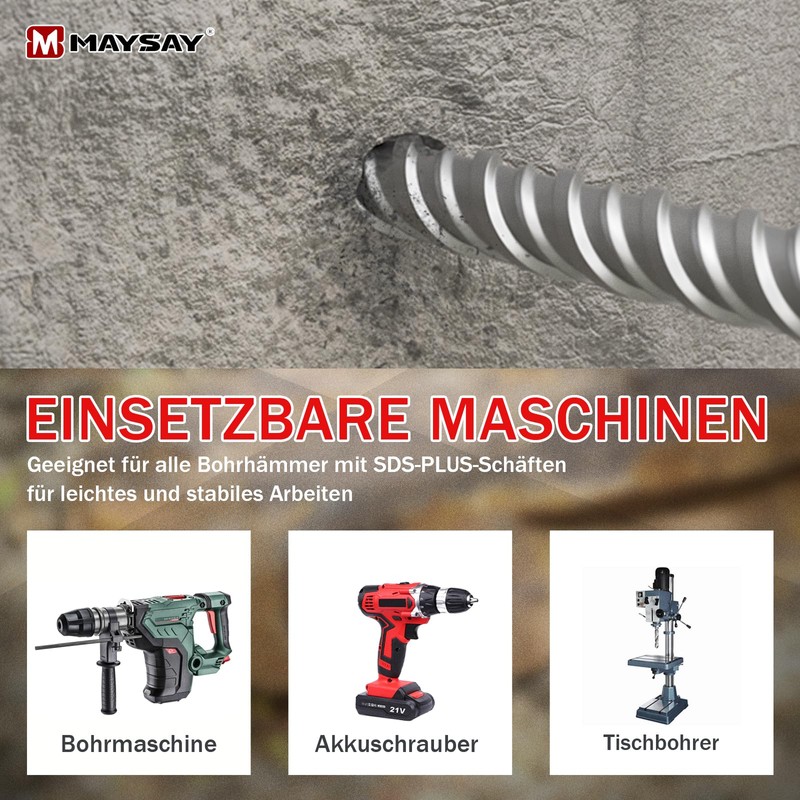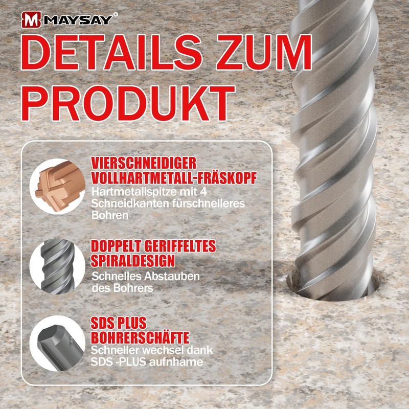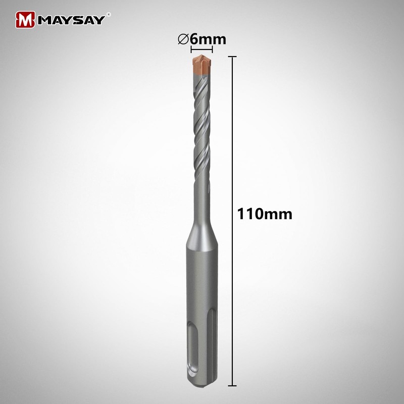 Maysay SDS Plus Hammer Drill Bit 6 x 110 mm with 4 Carbide Cutting Edges Professional Concrete Drill Bit for Stone, Concrete, Wood, Brick and Tiles