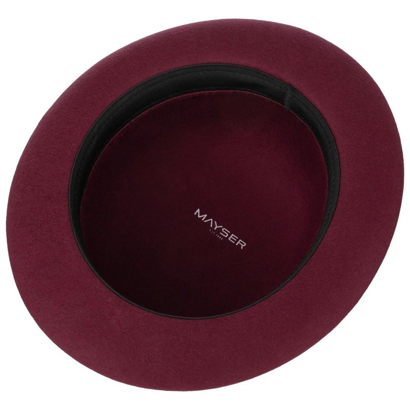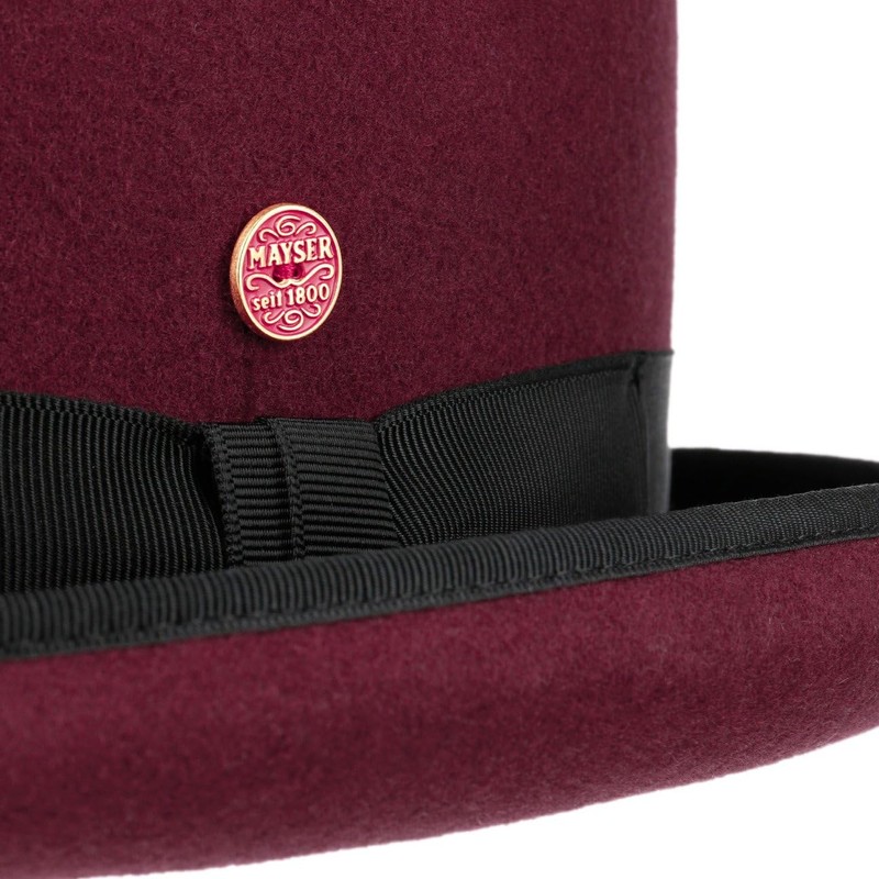 Mayser Viril Melone Hat Women/Men - Made in The EU Men's Hat Bowler Wool Felt Hat with Grosgrain Ribbon Edging Autumn Winter, bordeaux