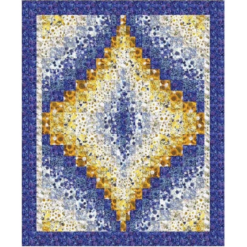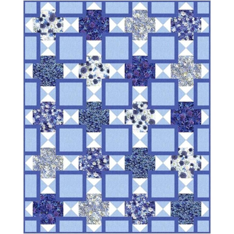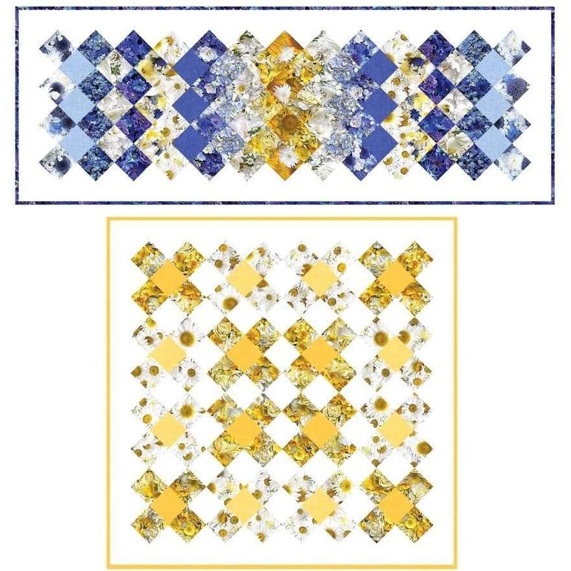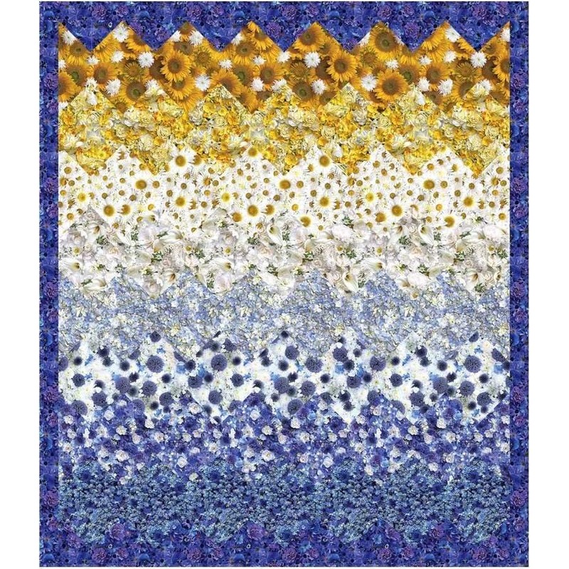 Picture 2 shows this fabric with a ruler for scale, picture 3 shows all the floral fabrics in this collection and pictures 4 thru 8 show sample quilt projects using these fabrics. The "free" pattern for the quilt shown in picture 5 is available to download and print on our website at: http://www.fabricutopia.com/shop/categories-free/ .
