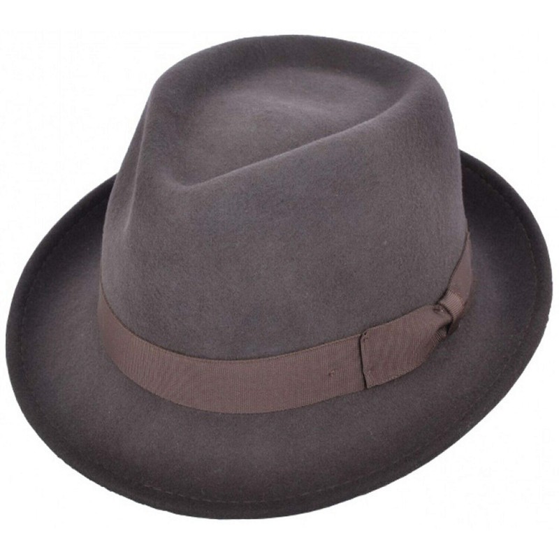 - Crushable Wool Felt Trilby Hat with Matching Grosgrain Ribbon, 2" Wide Brim 4" High Crown Comfortable cotton sweatband,