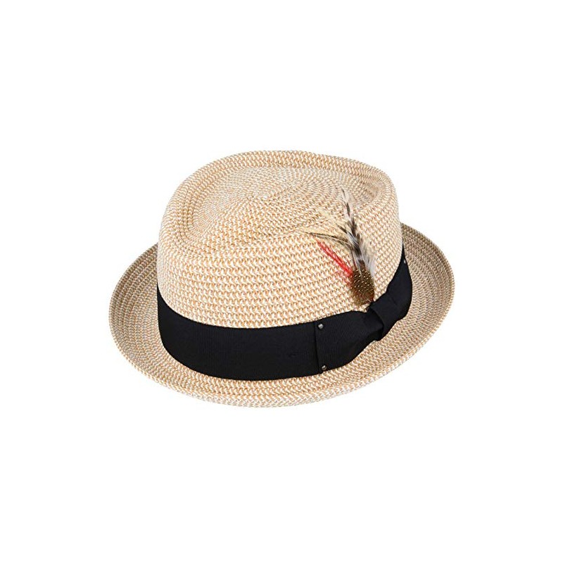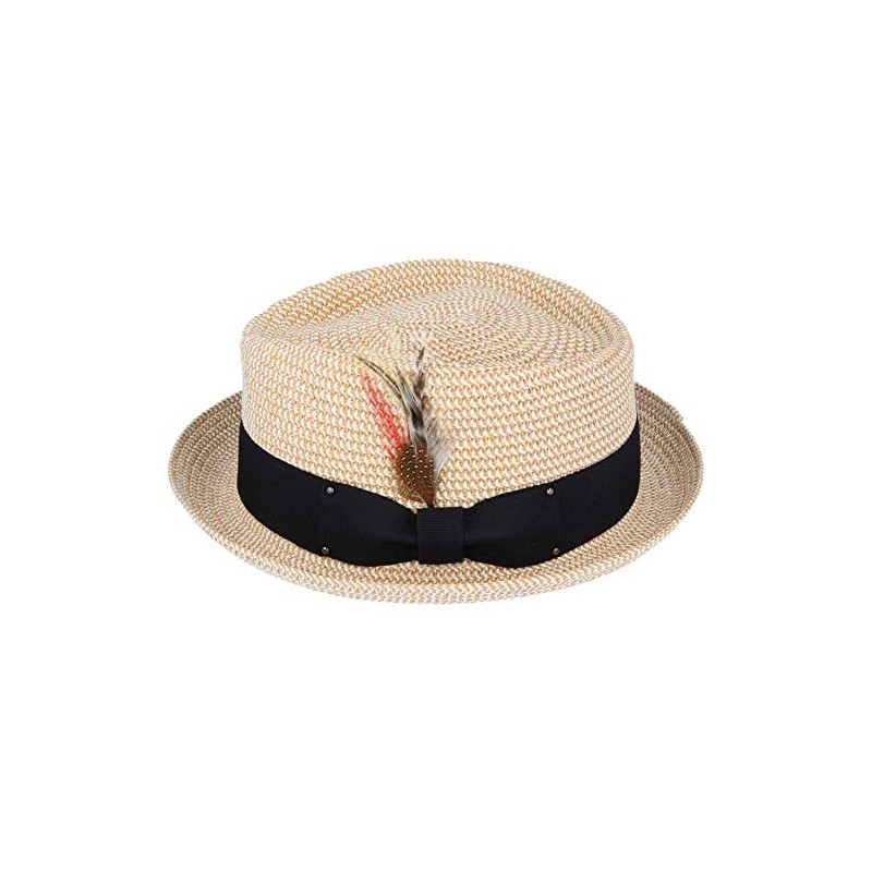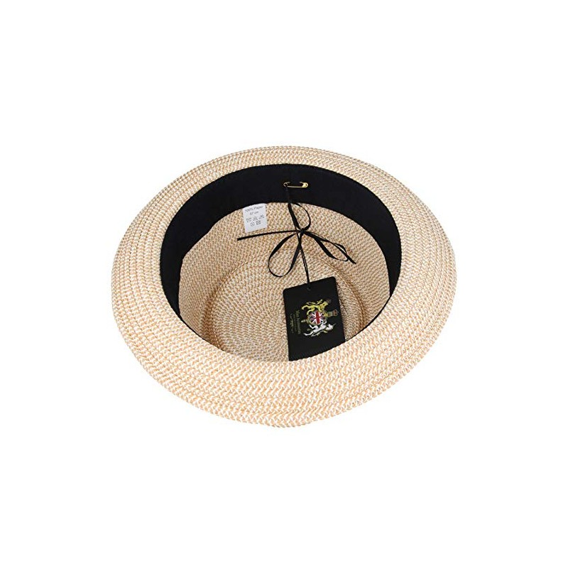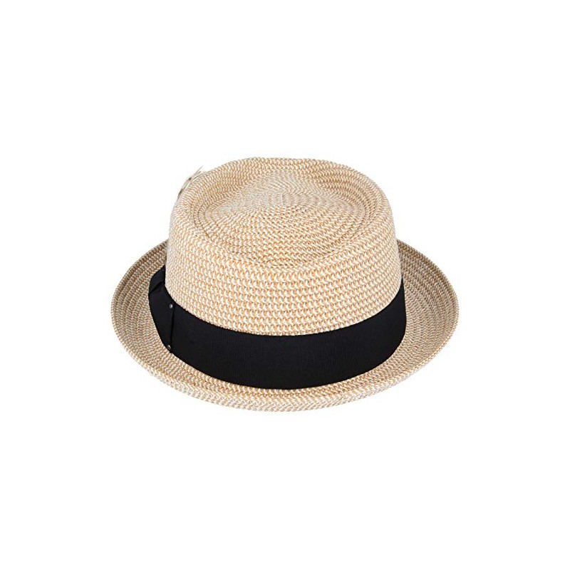 MAZ Summer Straw Diamond Crown Pork Pie Hat - with Adjustable String (Small, Natural)