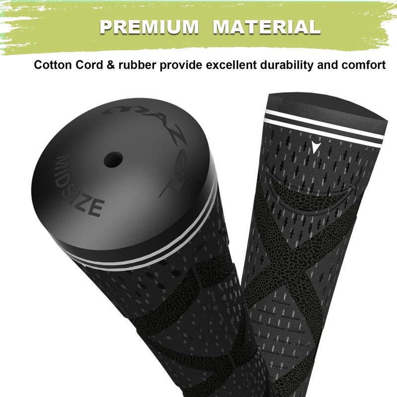 MAZEL Cord Rubber Golf Grips for Men - 10 Pack,All Weather Control Golf Club Grips Standard/Midsize,High Feedback & Traction (Midsize, White Black,10 Grips)