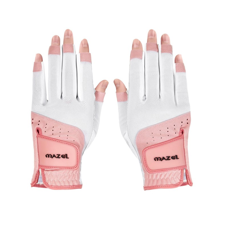 MAZEL Golf Gloves Women One Pair S M L XL, Open Fingers for Easy Touch Screen, Left Right Hand Leather Ladies Gloves Small Medium Large Extra Large (Pink Pair, XL)
