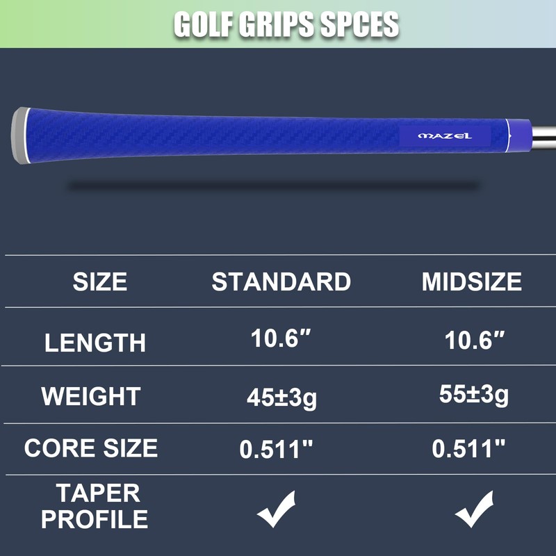 MAZEL High-Performance Rubber Golf Grips 10 Pack, Non-Slip Golf Club Grips Set Standard/Medium Sizes (Navy)