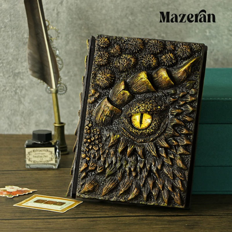 Mazeran 3D Dragon Hardcover Embossed Journal, Antique Handmade Earth Dragon Eye Polystone A5 Blank Craft Writing Sketch Notebook Daily Notepad, Home Ornament Artistic Fantasy Decoration