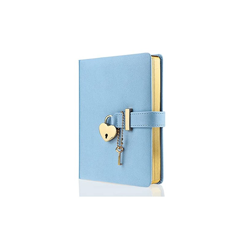 MAZERAN Lock Journal, Heart Shaped Locking PU Leather Hard Cover Gold Gild Edge Notebook Travel Diary, B6 Lined Locking with Key Personal Planner Organizer Gift for Girls Women Wife