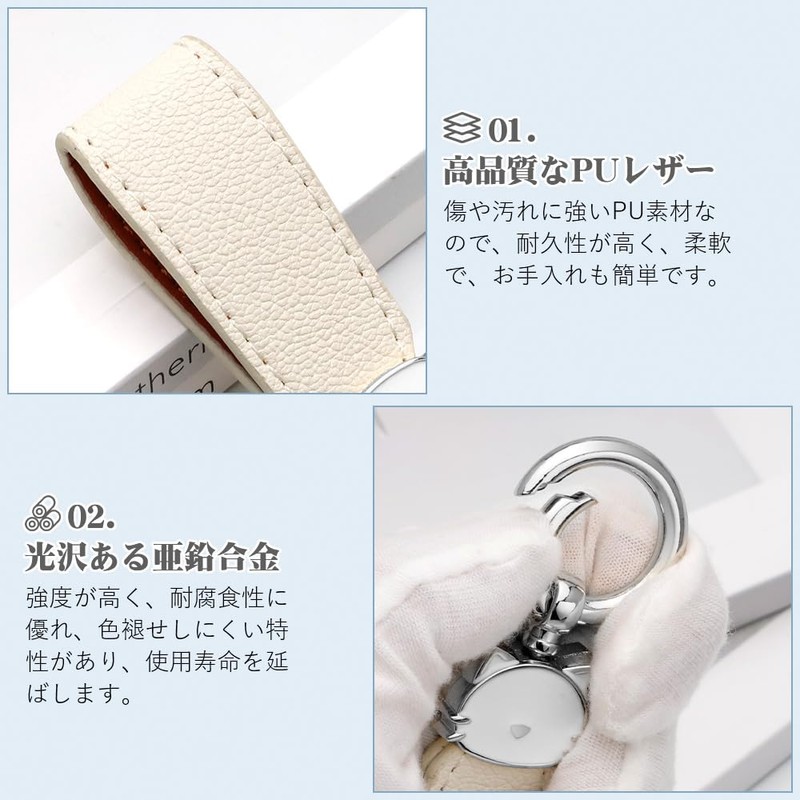 Made of plated metal material with good touch feeling, the key chain handle is made of high quality PU leather, beige leather design gives you a simple and luxurious vision - <360° Rotatable Keyring> By combining the ring with the anti-lost function, the keychain can rotate 360°. Especially for people with lots of keys, keys can be easily managed