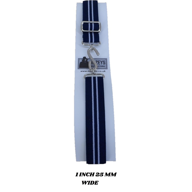 Mazeys Retro Unisex 70s Elastic Snake Belts (Navy/White)