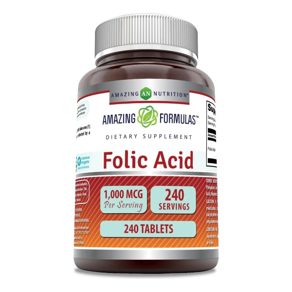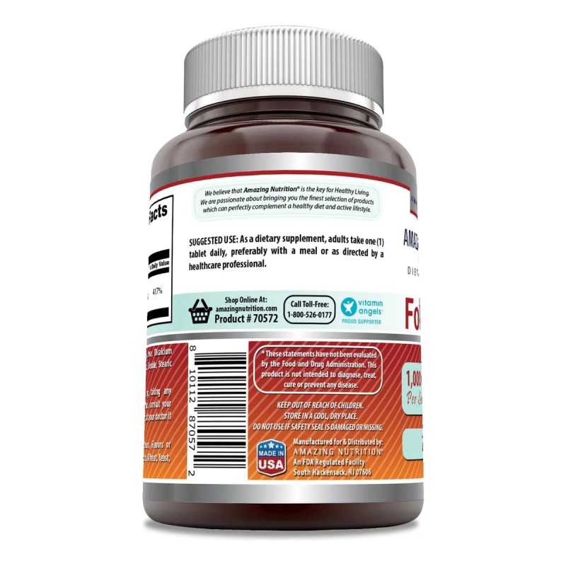 Amazing Nutrition® Amazing Formulas™ Folic Acid 1,000 mcg 240 Tabletas | Suplemento Dietético para Salud Celular, Prenatal y Energía Metabólica.