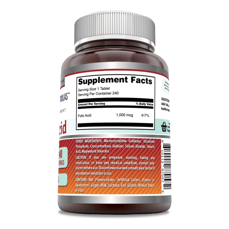 Ingredientes: Folic Acid 1,000 mcg. Consulta la tabla nutricional para mayor información.