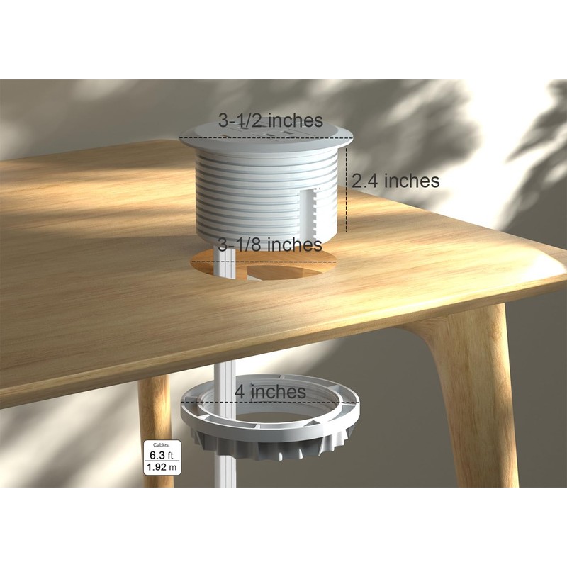 • Super easy installation - Insert the desktop power grommet into the 3-1/8-inch desk grommet hole,rotary locking ring
