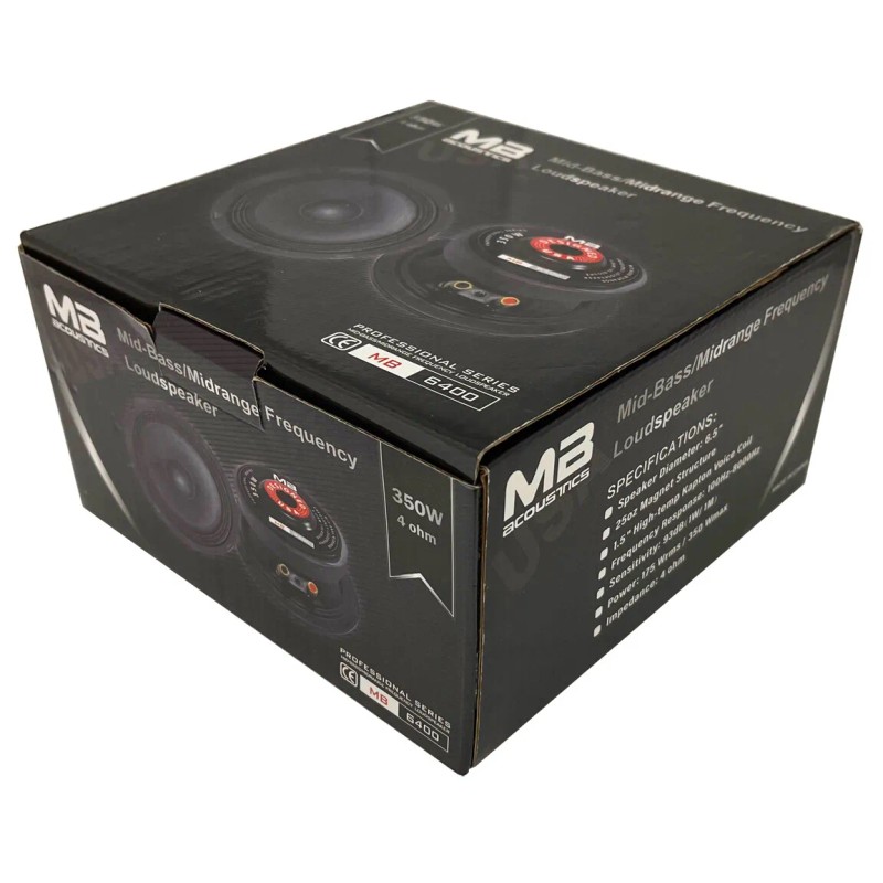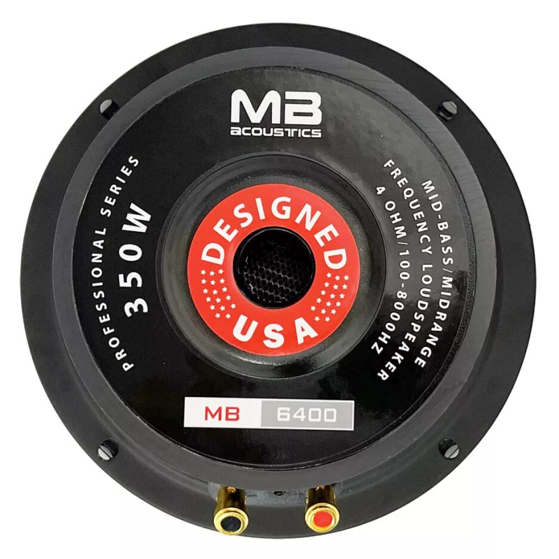 The MB Acoustics MB-6400 - 6.5" Loudspeaker was designed for Natural Sound during high SPL levels. It has a 25oz magnet with a bumped back plate coupled to a 1.5" voice coil with high temperature Kapton to achieve higher power handling and protect the voice coil on high power peaks. It reproduces smooth and natural Midrange frequencies with proper crossover levels.