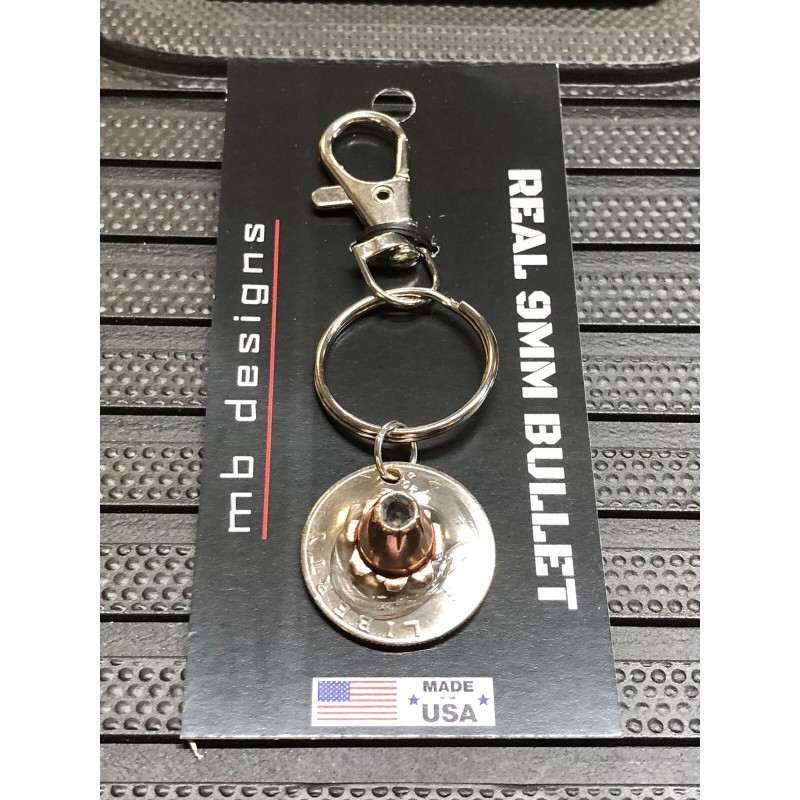 MB Designs Real 9mm Hollow Point Bullet Quarter Keychain Unique Gift