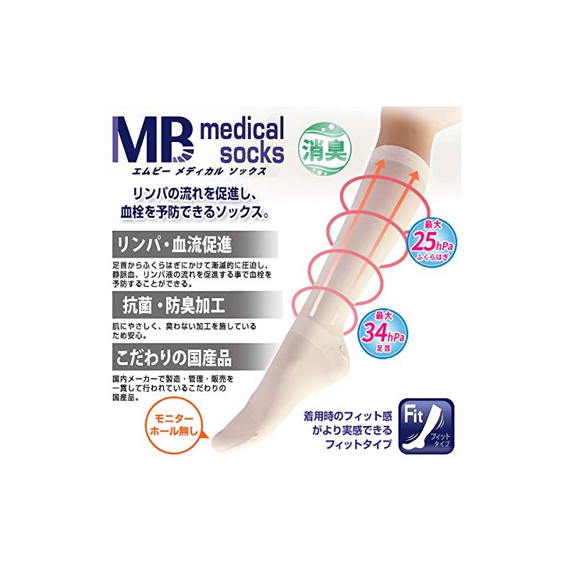 MB メディカルソックス フィットタイプ (モニターホール無し) 一般医療機器 医療用 着圧ソックス 日本製 Lサイズ 白