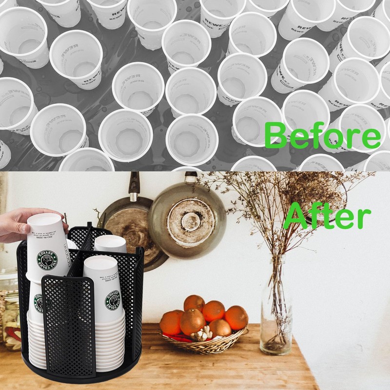- 🍹【Space-saving design 】The desktop rotating paper cup holder is a great space-saving solution for small offices or homes. It can hold multiple cups without taking up too much space on your deskout taking up too much space on your desk.