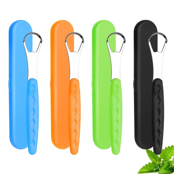 - 【Tongue Cleaner Set】 This package includes 4 tongue scrapers in 4 distinct colors, green, black, orange, and blue, to prevent confusion among family members. Additionally, it comes with 4 storage cases, making it more convenient to carry during your travels. This is a sustainable choice for your oral care routine.
