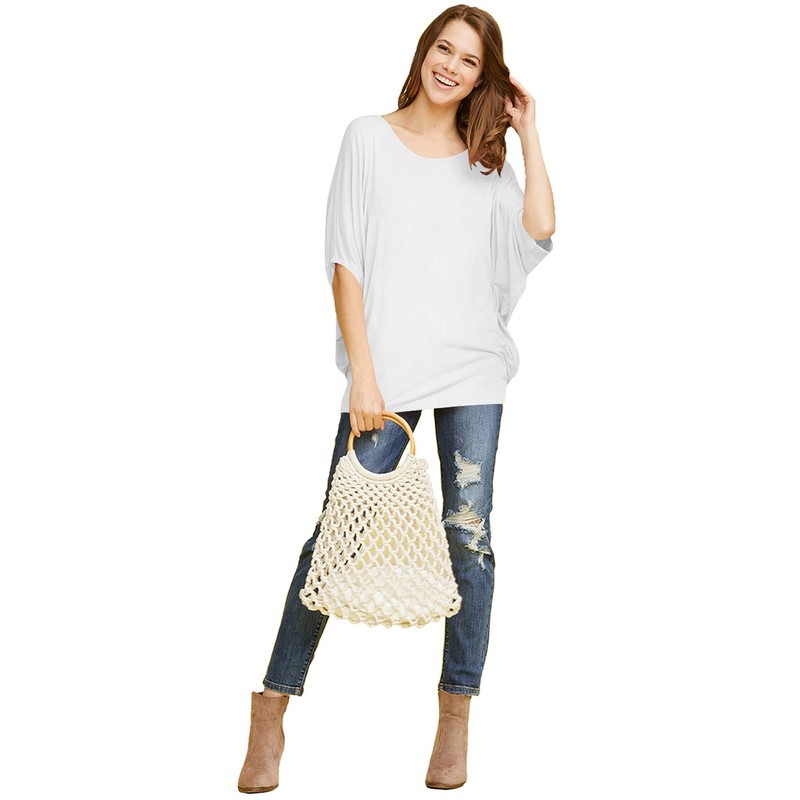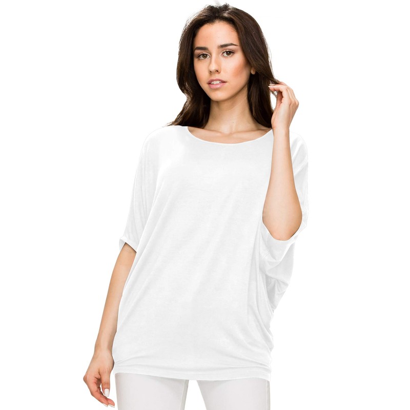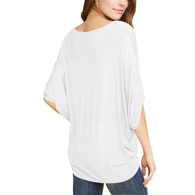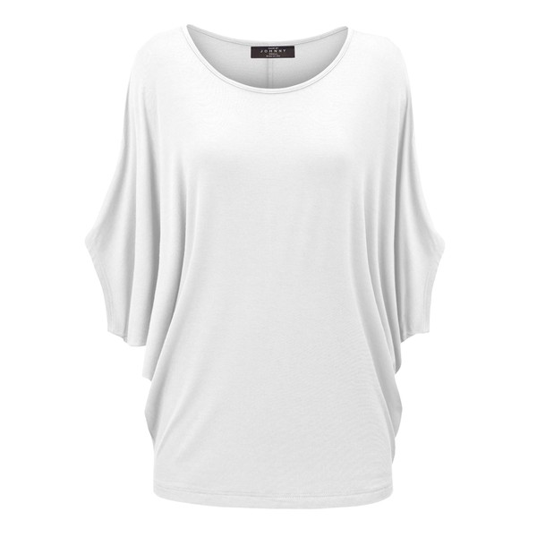 MBJ WT1073 Womens Scoop Neck Half Sleeve Batwing Dolman Top L White