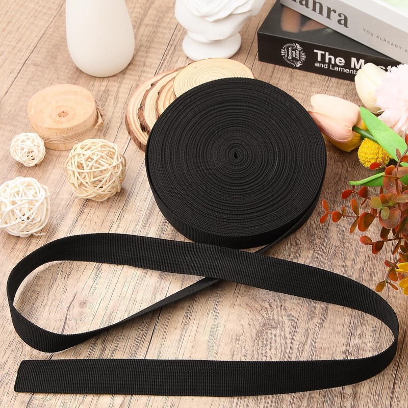 Mbsomnus 15 m Webbing Polypropylene Webbing 25 mm Black Webbing Cotton Bag Strap Webbing Water Resistant Nylon Strap for Cutting Sewing DIY Backpack Luggage Straps Handbags Dog Leashes