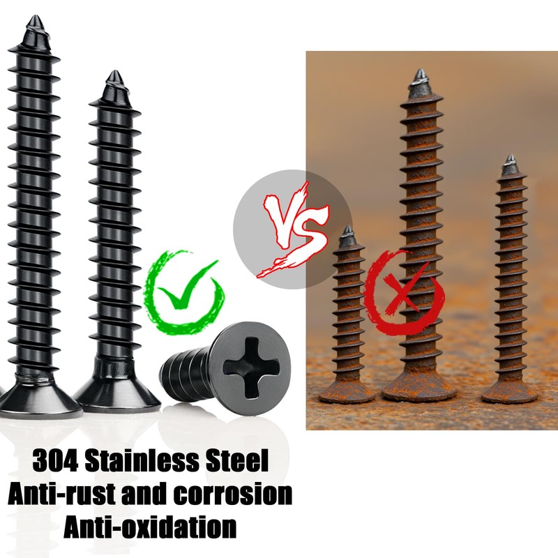 - Cross countersunk head design: Mbsomnus M3 self-tapping stainless steel black screws feature a standard Phillips design with efficient torque transmission, uniform force and precise installation alignment. The countersunk structure allows the screw head to be embedded into the material surface, keeping it flat and beautiful, reducing the risk of scratches while preventing slipping and loosening.