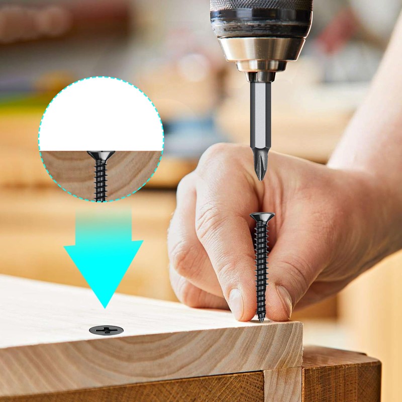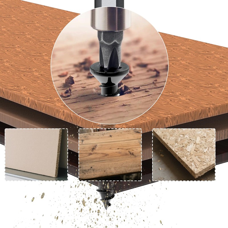 The screwdriver insert of the Mbsomnus Phillips wood screws black is perfectly matched to the Phillips of the product. This means that it does not slip off easily when tightening the screws. This ensures a more concentrated force and more efficient assembly.