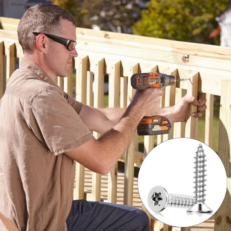 Mbsomnus Stainless steel screws wood with bevelled design, easy to align the holes and guide the threads correctly to engage, effectively reduce the installation process of bias and oblique phenomenon, especially suitable for multi-point symmetrical arrangement of the installation project to ensure that each stainless steel screw position is more stable to improve the stability of the entire structure and aesthetics.